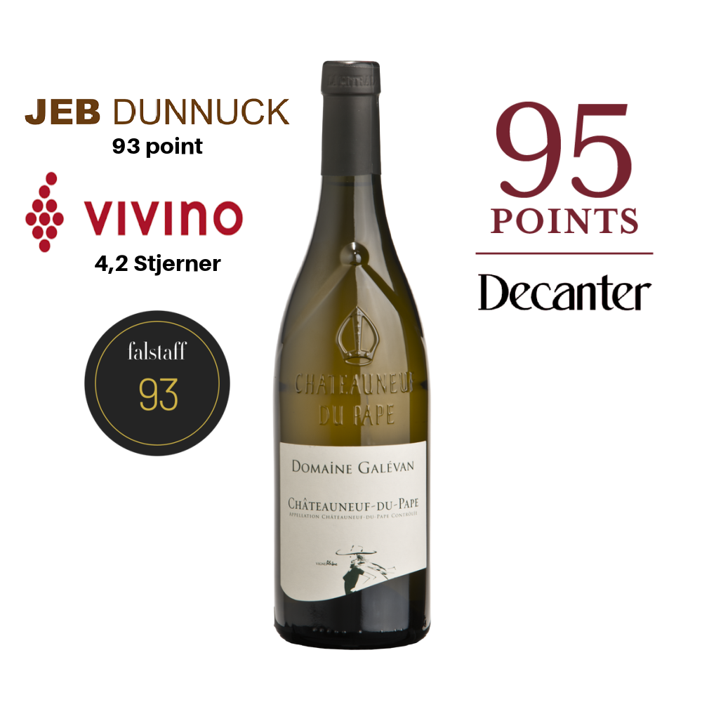 Husets top hvidvin fra Domaine Galévan i form af Châteauneuf du Pape blanc, som har vundet utallige priser og får rigtig gode anmeldelser.